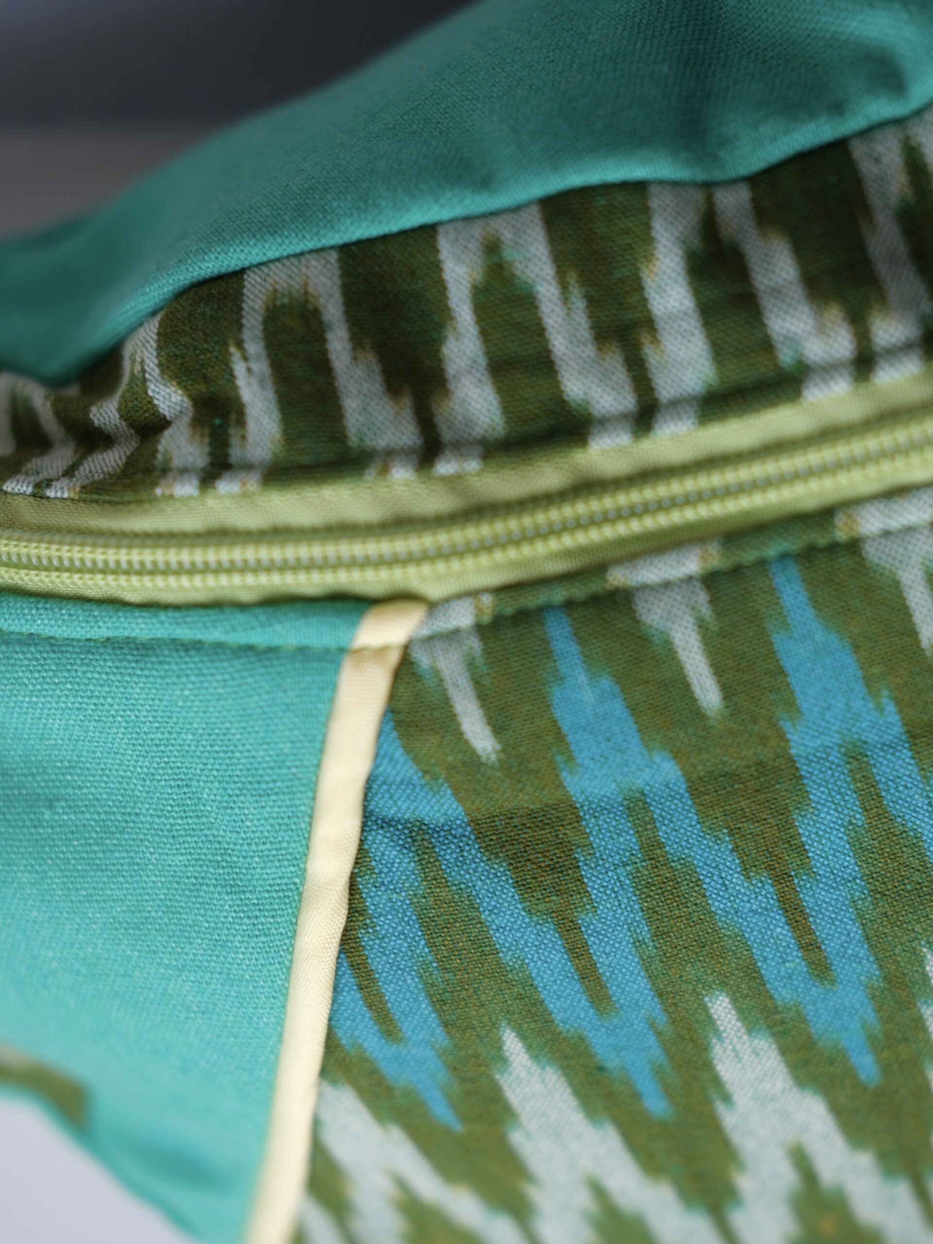 This fabric comes from a garage sale in Alsace, I must have had it in a drawer for 15 years, patiently waiting to be used, as for the solid green it is a cotton canvas from a small armchair. We take everything apart, a good wash and a second life for this fabric.